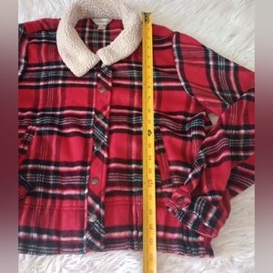Christopher & Banks Plaid Red Women's Jacket with Sherpa Collar