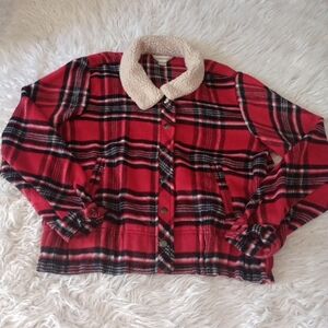 Christopher & Banks Plaid Red Women's Jacket with Sherpa Collar