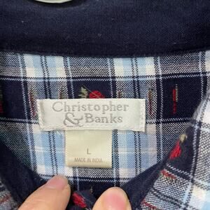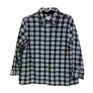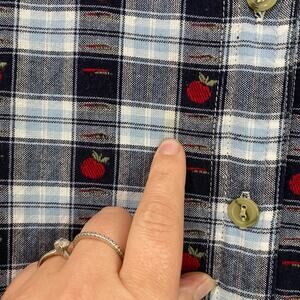 Christopher & Banks Plaid Teacher's Apple Button Down Top Size Large