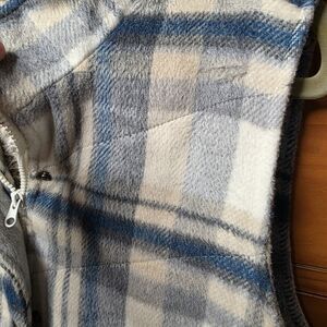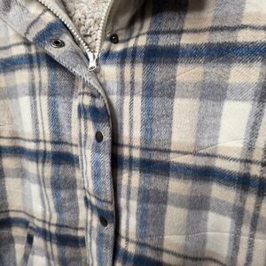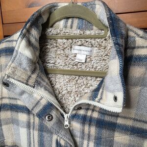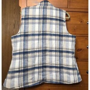 Christopher & Banks Plaid Vest Size Large Plaid Blue Brown Sherpa Lined Snaps