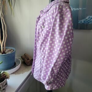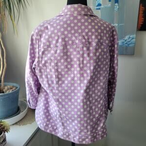 Add a playful twist to classic denim style with this CJ (Christopher & Banks) Purple Polka Dot Denim Jacket, size 1X.