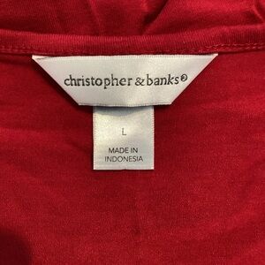 Tags: Christopher & Banks tank top, red ruffle front top, scoop neck sleeveless shirt, textured tank large, women’s red layering top, casual dressy sleeveless blouse