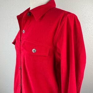 Christopher & Banks Red Velour Button Down Shirt Size M EUC