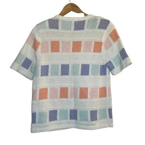 •Style Profile: Christopher & Banks Short Sleeved Pastel Patchwork Sweater Medium Full Zip Beach