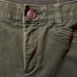 Slimming Pants green women's pants, featuring a classic five-pocket design with a button and zipper closure, straight-legged or slightly tapered.