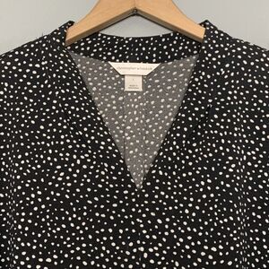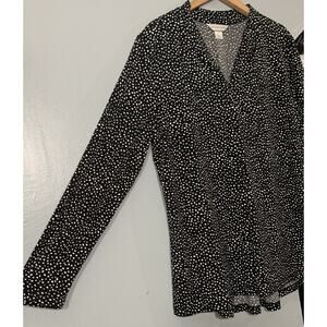 Christopher & Banks Size Large Black White Polka Dot Easy Care Knit Top Travel