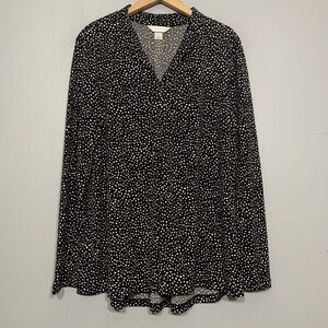 Christopher & Banks long sleeve black and white polka dot easy care stretch knit pullover top in Excellent condition!
