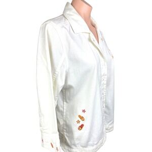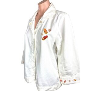 Christopher & Banks Size M White Top Jacket -Sandal Appliques- 3/4 Sleeve Cotton