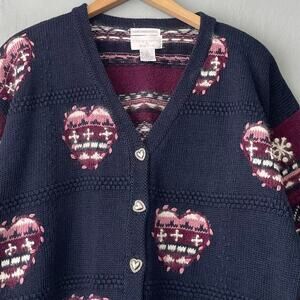 Christopher & Banks long sleeve hand embroidered heart button front sweater cardigan in Excellent pre-owned condition!