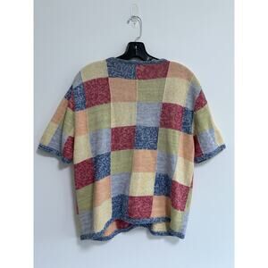 Christopher & Banks Size Medium Patchwork Sweater Cardigan Cottage Vintage Granny Grandma Short Sleeve