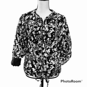 Christopher Banks Size Medium Quilted Jacket Coat Floral Black/White Small