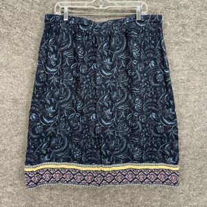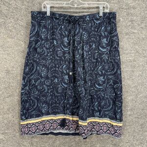 Christopher & Banks Skirt Women XL Blue Floral Drawstring Rayon A-Line Midi