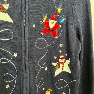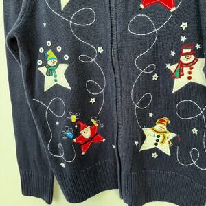 Christopher & Banks Snowman Zip Up Cardigan Sweater XL Christmas Holiday Winter