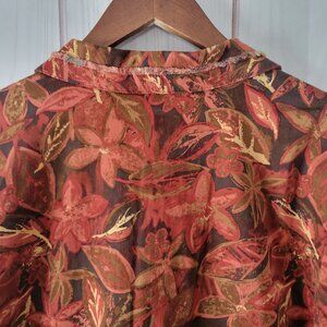 Christopher & Banks Stretch Floral Zip Front Distressed Cotton Blazer Jacket, Women’s L, Lightweight Shirt Jacket, Like New, EUC