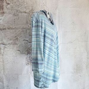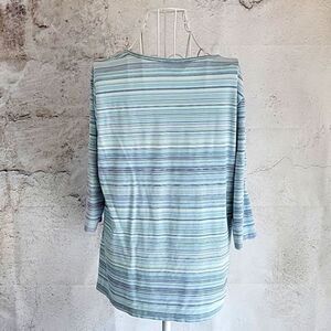 Pullover cotton blend top by Christopher and Banks with 3/4 sleeves, v-neckline, and a straight hemline. Good pre-owned condition with normal signs of wash and wear.