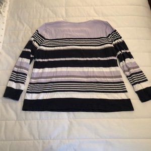 This women's Christopher & Banks striped longsleeve is purple, black and white in color and is a size XL. It is made out of 100% cotton and is 25 inches in length with a pit to pit measurement of 22 inches. This blouse is in great condition with no rips, tears or stains.