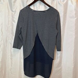 Christopher & Banks Striped Polka Dot Layered Tunic Top | Size Large