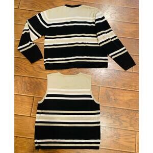 Christopher & Banks Sweater L Vest Set Striped Black Tan White Cardigan Button