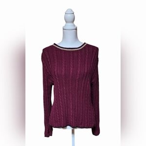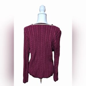 Christopher & Banks Sweater Size Medium Burgundy Cable Knit Christmas Women's