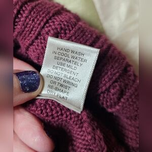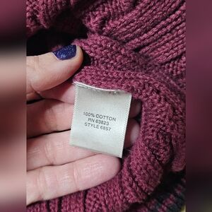 This Christopher & Banks sweater is perfect for the holiday season with its classic cable-knit design in a beautiful burgundy color. The sweater features a crew neck and long sleeves, making it suitable for both casual and workwear occasions. Its comfortable fit and knit style accents make it a must-have piece for any woman's wardrobe. The sweater is made of 100% cotton and is suitable for winter, fall, and spring seasons. Its solid pattern and one-piece character family add a touch of elegance to the overall design. This sweater is available in size medium and is perfect for travel and casual occasions.