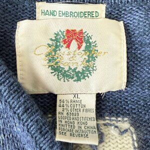 Christopher & Banks Sweater XL Blue Hand Embroidered Snowflake Ice Skates