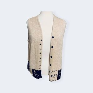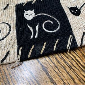 This adorable Christopher & Banks light beige and black Hand Embroidered Cat Graphic vest