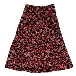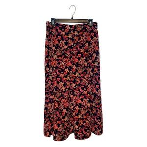 Christopher & Banks Sz 4 Microfiber Midi Long A-Line Skirt Flare Floral Side Zip