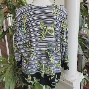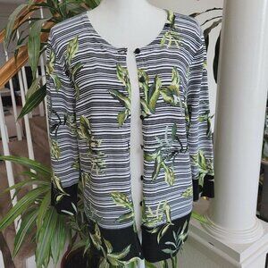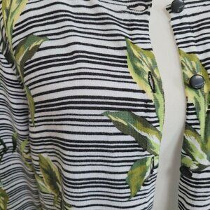 mature, Lightweight, layering, basics, knit, striped, button front, semi tropical