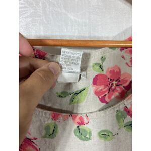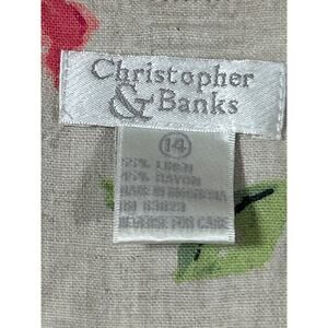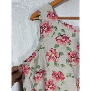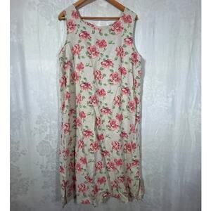 Christopher Banks Tank Dress 14 Tan Pink Floral Linen Blend Side Slit Midi