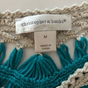 Christopher & Banks Teal and Cream Crochet Top Medium