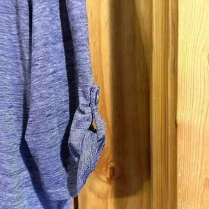 Purple three quarter length top with v-neck with buttons