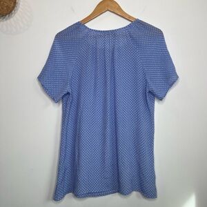 Christopher & Banks top. Wear casual or dress it up for the office. Light weight with cute sleeves and front neck tie. Blue & white.