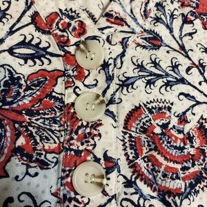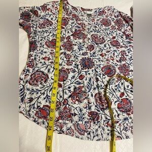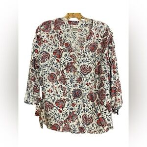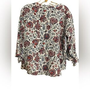 Christopher & Banks Top Size L 3/4 Tie Sleeves Floral Linen Blend Blue R…