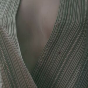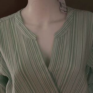 Christopher & Banks V neck 3/4 length sleeve mint green stripped blouse Large