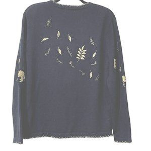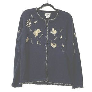 Christopher & Banks VTG size L hand embroidered navy/ gold autumn leaf cardigan