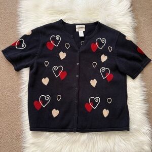 Christopher & Banks Valentines Hearts Short Sleeve Sweater Cardigan Large
