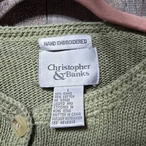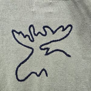 Christopher & Banks Green Hand Embroidered Moose Knit Cardigan Sweater