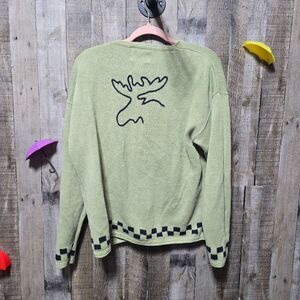 Christopher & Banks Vintage Green Hand Embroidered Moose Knit Cardigan Sweater