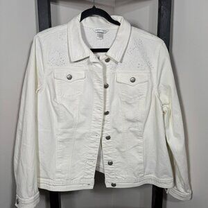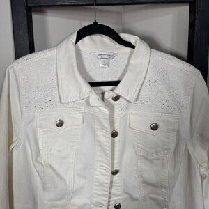 Christopher & Banks White Denim Jean Jacket with Eyelet Detail - NWT