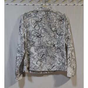 Christopher & Banks White/Black Print Flower Button Jacket Size S