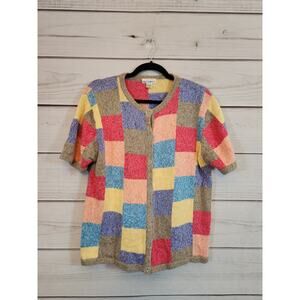 Christopher Banks Women Multicolor Colorblock Button Front Cardigan Sweater Sz L