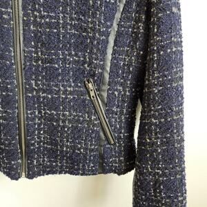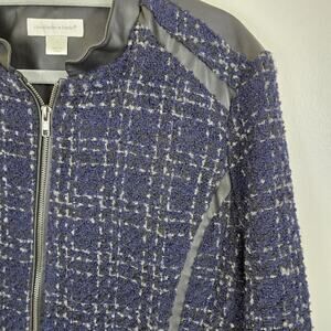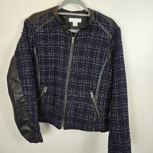 Christopher & Banks Women Nubby Tweed Jacket LARGE Zip Faux Leather Accent Moto