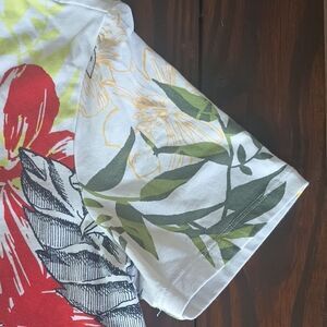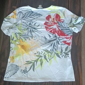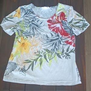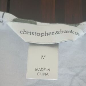 Christopher & Banks Women Sz Medium White Floral Print Short Sleeve Top Cotton