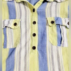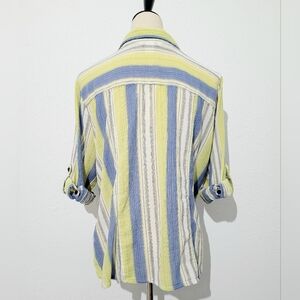 Christopher & Banks Women XL Button-Front Shirt Yellow Blue Striped 100% Cotton