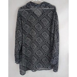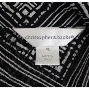 Christopher & Banks Women's Black & White Sheer Button Up Blouse Size XL