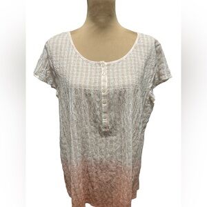 Christopher & Banks Women’s Blouse XL Ombré Peach/White Stripe Gauzy Cap Sleeve.