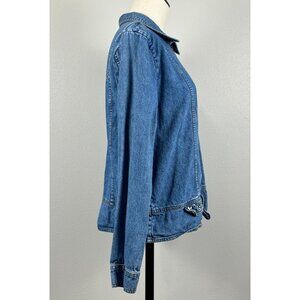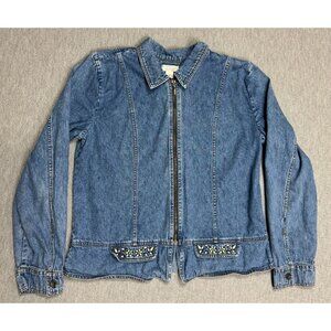 Christopher Banks Womens Blue Denim Jacket Full Zip Embroidered Size Medium