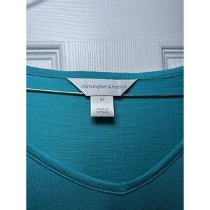 The Christopher & Banks Women's Braided Short Sleeve Shirt in Teal, Size Medium, is a stylish and versatile top perfect for various occasions. Made from a blend of cotton and modal, this shirt features a V-neckline, pullover closure, and slit sleeves. Its solid pattern and lightweight design make it suitable for casual, formal, and workwear settings, while the breathable material ensures comfort throughout the seasons. Easy to care for with machine washable instructions, this shirt from the renowned brand Christopher & Banks offers a regular fit for a flattering look.