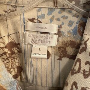 Christopher & Banks Women’s Denim Jean Jacket Large Beige Cheetah Print Abstract