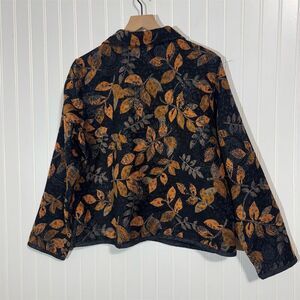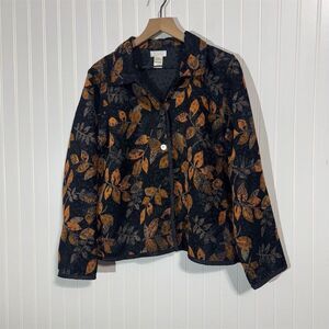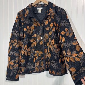 Christopher & Banks Women’s Jacket XL Black Orange Leaf Print Fall Button Front